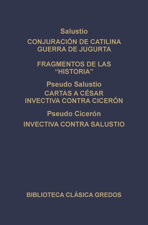 Salustio fue el primer historiador considerado clásico entre los romanos, y tuvo una influencia inmensa: sólo Cicerón es más citado que él entre los escritores latinos en prosa.Este volumen contiene todo cuanto de su obra nos ha llegado: dos monografías, Conjuración de Catilina y Guerra de Jugurta, y fragmentos de su escrito principal, una historia de Roma que abarca de los años 78 al 67 a.C. Se dice de él que tuvo una juventud disipada, y en el 50 a.C. fue expulsado durante un año del Senado por motivos morales, aunque esta explicación podía servir para arreglar cuentas pendientes. Lo cierto es que Salustio se implicó en la política de su tiempo: estuvo en el bando de César (que impulsó su carrera política) y enfrentado al partido de Pompeyo, a la vieja aristocracia romana y al republicano Cicerón. En condición de pretor acompañó a César en la campaña de África que doblegó por completo a Pompeyo, y fue nombrado gobernador de la provincia de Numidia, cargo en el que cometió abusos y extorsiones de cuya responsabilidad sólo el apoyo de César logró eximirle. A su regreso a Roma se apartó de la política y se dedicó a cuidar y embellecer los jardines del Quirinal y a componer sus tratados históricos. Salustio exhibió en sus escritos un fuerte moralismo que muchos han considerado contradictorio con su trayectoria pública, nada impecable. Algunos críticos han optado por no creer las acusaciones que se vertieron sobre él y considerarlas simples improperios partidistas; otros las consideran irrelevantes para su tarea de historiador.Se completa con dos apéndices apócrifos. Las Cartas a César fueron compuestas en alguna escuela de retórica que remedaba el estilo de Salustio, con un tono demasiado envarado para ser el auténtico de unas misivas. La Invectiva contra Salustio, atribuida falazmente a Cicerón, es una pieza de intención humorística que hay que considerar como simple ejercicio retórico escolar.