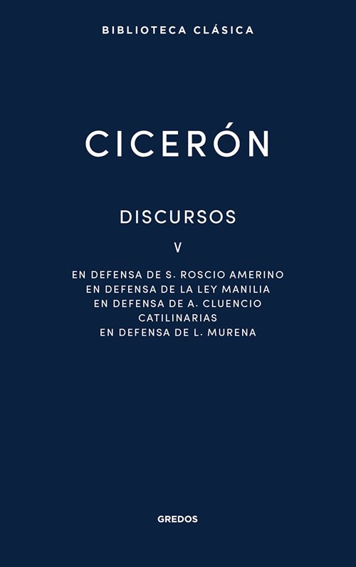 Publicado originalmente en la BCG con el número 211, este volumen presenta las traducciones de En defensa de S. Roscio Amerino, En defensa de la ley Manilia, En defensa de A. Cluencio, Catilinarias y En defensa de L. Murena realizadas por Jesús Aspa Cereza.