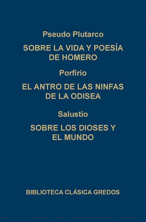 Estos tres textos reflejan el interés que suscitó Homero a lo largo de toda la Antigüedad, y atestiguan diversas líneas del comentario filológico.Compuesto hacia el siglo II d.C., una época de erudición y mímesis, Sobre la vida y poesía de Homero es testimonio de ilimitada admiración por la poesía homérica y su autor. Pertenece a la tradición de exégesis alegórica de los poemas de Homero (puede compararse con las Alegorías de Homero, de Heráclito, también aparecidas en esta colección), y no se resiste a participar en la infecunda búsqueda de una biografía. Nada sabemos de su autor –se han citado y refutado los nombres de Plutarco, Porfirio y Dionisio de Halicarnaso–, que será cualquiera del sinfín de filólogos antiguos adeptos de Homero. La obra se divide en dos partes (probablemente debidas a dos autores distintos), dedicadas a vida y obra, con predominio de la segunda, un comentario de la forma y el contenido de la Ilíada y la Odisea.Porfirio (Tiro, 232 - Roma, principios de siglo IV), discípulo de Plotino, compuso con El antro de las ninfas de la Odisea un curioso comentario alegórico a un célebre pasaje homérico, en una muestra característica de un tipo de exégesis que los neoplatónicos practicaron con gran habilidad, y cuyo tono armoniza con el texto anterior.Finalmente, Sobre los dioses y el mundo, opúsculo teológico de la segunda mitad del siglo IV y de autor desconocido, es una breve, clara y amena introducción a una teología pagana ya agonizante.