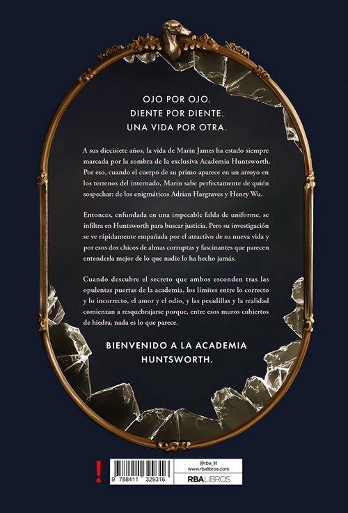 A sus diecisiete años, la vida de Marin James ha estado siempre marcada por la sombra de la exclusiva Academia Huntsworth. Por eso, cuando el cuerpo de su primo aparece en un arroyo en los terrenos del internado, Marin sabe perfectamente de quién sospechar: los enigmáticos y fascinantes Adrian Hargraves y Henry Wu.