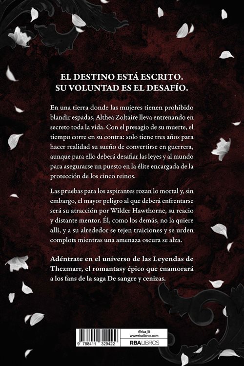 Pero las pruebas de los aspirantes rozan lo mortal y, sin embargo, el mayor peligro al que deberá enfrentarse será su atracción por Wilder Hawthorne, su reacio y distante mentor. Él, como los demás, no la quiere allí, y a su alrededor se tejen traiciones y se urden complots mientras una amenaza oscura se alza.