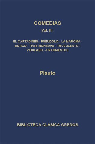 Plauto (Sàrsina, 259/4 aC-Roma, 184 aC). Llegado a Roma en su juventud, dedicándose a diferentes tareas teatrales, a través de las cuales habría aprendido de primera mano el arte de la comedia. Ya desde la antigüedad se le han atribuido con seguridad veintiuna una obras, con las que alcanzó el éxito entre los romanos de su tiempo. Las más conocidas, por haber influido en los grandes comediógrafos europeos de todos los tiempos, son Psèudolus, Anfitrión, La olla, Los gemelos, El soldado fanfarrón y La comedia del fantasma.