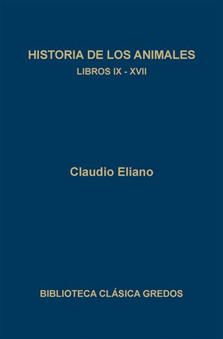Por su gracia y amenidad, estas anécdotas desenfadadas y a menudo extravagantes sobre la vida y las costumbres de los animales fueron una de las fuentes de los bestiarios medievales.Claudio Eliano vivió en un tiempo (siglos II-III d.C.) que en literatura valoraba el entretenimiento y la distracción, lo curioso y lo sorprendente, más que lo solemne y lo esencial. Por eso las obras misceláneas y anecdóticas de este profesor de retórica griego instalado en Roma gozaron de un público interesado. La Historia de los animales, escrita en griego y concebida para el solaz de lectores cultos, se enmarca en el género de la literatura paradoxográfica, que procuraba diversiones evasivas e intrascendentes mediante la colección de anécdotas exóticas. El autor se basa en Plinio el Viejo y otros autores más que en una observación directa de campo, lo que pone de manifiesto que el suyo es un enfoque libresco y erudito, no naturalista, y desde luego escasamente científico. De él se conservan también las Historias curiosas y las Cartas rústicas (ambas en Biblioteca Clásica Gredos).