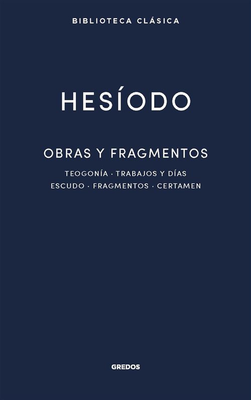 Poeta educador del pueblo, Hesíodo es, junto con Homero, el gran responsable de haber fijado el marco religioso de los griegos. Por lo tanto, su impacto y su influencia en la cultura occidental son casi inabarcables. Sus textos, originados al consolidarse la polis griega en el siglo VIII a. C., son fundamentales para establecer en buena medida la cultura clásica posterior. Este volumen, preparado por dos excelentes conocedores de la literatura griega arcaica, recoge toda la obra conocida de Hesíodo, así como algún texto de dudosa autenticidad que la tradición le atribuye. Eso incluye sus célebres Teogonía, Trabajos y días y Escudo, y también textos fragmentarios como el Catálogo de las mujeres o las Grandes Eeas.Publicado originalmente en la BCG con el número 13, este volumen presenta las traducciones de Obras y Fragmentos, realizadas respectivamente por Aurelio Pérez Jiménez (Universidad de Málaga) y Alfonso Martínez Díez (Universidad Complutense de Madrid).