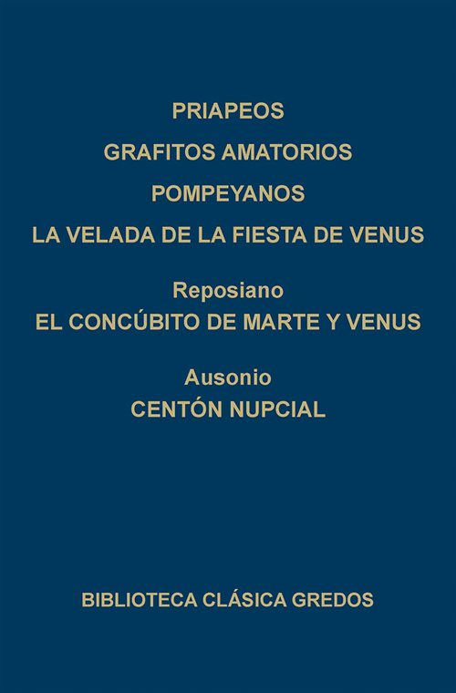 Este volumen reúne diversas composiciones de tipo erótico y jocoso, muchas de ellas subidas de tono, lo que explica su escasa o nula circulación incluso en lengua latina.El denominador común de los textos y poemas de este volumen es el erotismo y el sexo, en un abanico de tonos que van desde un refinamiento sensual al exabrupto chocarrero, pasando por una saludable obscenidad jocosa y epigramática. No es de extrañar que buena parte de estos textos, aun dentro de su lengua original, hayan tenido poca difusión. Y aún menos que algunos, como los grafitos o los Priapeos, no hayan sido traducidos a nuestra lengua.Los Priapeos, colección de ochenta breves poemas, son de carácter erótico-jocoso y tienen como protagonista al dios Príapo, dios guardián de los huertos que con su falo erecto era el más cumplido símbolo del instinto sexual. Su época de composición es cercana a la época de Augusto, y es posible que se trate de una colección con poemitas atribuidos a Ovidio o Tibulo.Los grafitos amatorios pompeyanos son una selección dentro de la temática erótica, de esas «pintadas» (unas diez mil) que la erupción del Vesubio del 79 ha conservado como testimonio de la vida cotidiana urbana en la Antigüedad tanto en su espontaneidad como en su banalidad.La velada de la fiesta de Venus es una exaltación de Venus y la Naturaleza, pero desde una perspectiva ensoñadora y romántica. El concúbito de Marte y Venus, de Reposiano (siglo III), es también un himno al amor, a la unión entre hombre y mujer, a partir de la relación entre estos dioses. El centón nupcial de Ausonio (poeta áulico y rétor del siglo IV) es el relato de una boda, con noche incluida, elaborado exclusivamente con hemistiquios (o mitades de verso) de Virgilio: una buena muestra tanto de la capacidad versificadora y conocimiento del Mantuano como de falta de respeto por su obra.