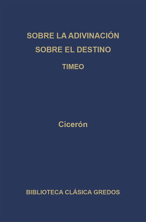 Tres tratados (uno de ellos, adaptación del diálogo platónico homónimo) sobre la capacidad de entrever acontecimientos futuros, en los que Cicerón se muestra muy racionalista y escéptico.Componen este volumen tres obras cuyo tema es la capacidad de los hombres para conocer lo que les depara la suerte o (caso de existir) el destino. El diálogo Sobre la adivinación, publicado en el 44 a.C., trata de las doctrinas estoicas acerca del destino y la posibilidad de predecirlo. El diálogo, mantenido en la villa que Cicerón poseía en Túsculo, tiene como interlocutores a su hermano Quinto y a él mismo (Marco). El primero, que se muestra muy familiarizado con las concepciones estoicas, sostiene la validez de algunas formas de adivinación, y opina que por prudencia debe mantenerse la adivinación de asuntos de estado. Marco replica que el futuro puede obedecer al azar (en cuyo caso no puede conocerse de antemano) o está predeterminado (y entonces de nada sirve conocerlo, puesto que no se puede modificar). De divinatione trata de combatir un creciente interés por la profecía religiosa y termina con un elocuente ataque a la superstición, que se describe como «extendiéndose por todo el mundo, oprimiendo la mente de casi todos y aprovechándose de la debilidad humana». En este tratado, pues, la religión no está más libre que cualquier otro asunto de la práctica académica de oír a todas las partes, y se llega a demoler las supersticiones que habían recibido un trato respetuoso en Las leyes.Sobre el destino, del año 44 a.C., conservado sólo en parte, analiza si las acciones humanas están predeterminadas o no, y se opone al fatalismo estoico con varios argumentos que indican una prolongada reflexión sobre la materia. Completa este volumen la parte conservada de la adaptación que Cicerón hizo del Timeo platónico, en el que el filósofo pitagórico que da nombre al diálogo trata de la creación del universo por un dios creador o demiurgo bueno.