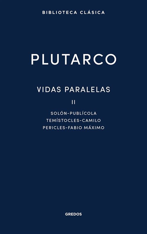 En este segundo volumen de Vidas paralelas, se recogen las biografías de Solón-Publícola, Temístocles-Camilo y Pericles-Fabio Máximo. Estos seis hombres contribuyeron de forma determinante a la formación y la consagración política de las dos grandes ciudades de la Antigüedad occidental: Atenas y Roma.