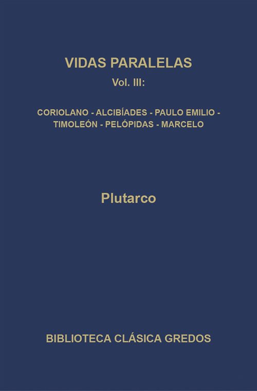 Con las Vidas paralelas, Plutarco compuso un original conjunto de biografías de personajes destacados en los mundos griego y romano, que hoy se lee con sumo agrado e interés y que en su tiempo iba dirigido, con intención ejemplarizante, a jóvenes comprometidos en la administración.El tercer volumen de las Vidas paralelas de Plutarco (50-125 d.C.) incluye las biografías de Pelópidas y Marcelo, Coriolano y Alcibíades, Timoleón y Paulo Emilio. La inmensa galería de espejos que nos ofrece Plutarco en sus «Vidas» se abre de nuevo para mostrar cómo los seres humanos, en los diferentes momentos que dibujan el trazado de su existencia, se convierten en encarnaciones de virtudes y vicios. Para ello Plutarco se sirve de un modelo de narración biográfica que pretende servir de «maestra de la vida», según el antiguo adagio romano, pues su intención es capturar el éthos, el carácter moral de estos héroes, vislumbrar cómo la naturaleza resulta modificada ante los avatares de la vida, sus éxitos y sus fracasos. La historia se convierte en una fuente de modelos éticos, desde la sublimidad moral a la abyección.Las biografías de Pelópidas, artífice junto a Epaminondas de la hegemonía militar de Tebas, y de Marcelo, el gran rival de los Escipiones en la vida política romana y «el único general al que Aníbal rehuía», aparecen unidas por su amor a la patria, por una vida consagrada a la milicia y a la política. Ambos encontrarán la muerte a causa del odio a sus enemigos: el cruel Alejandro de Feras y el gran Aníbal respectivamente, al confundir el valor en la batalla con la osadía y el desprecio a la vida, lo que es reprochable en un jefe militar. Asimismo es reseñable el célebre episodio de la derrota romana en Siracusa ante el matemático Arquímedes, narrado por Plutarco en la «Vida de Marcelo».Las biografías de Coriolano-Alcibíades y Timoleón-Paulo Emilio se centran en figuras que tuvieron un papel positivo o negativo en momentos de crisis de sus respectivos pueblos. En efecto, Alcibíades y Coriolano son responsables directos de los éxitos y fracasos militares de Atenas con los espartanos y de Roma con los volscos; lo mismo cabe decir de Paulo Emilio respecto de la guerra macedonia, que puso en peligro la estabilidad internacional de Roma. Por último, los cartagineses son el enemigo exterior al que se enfrenta y vence Timoleón, hacedor de la libertad para toda Sicilia, convertida en su auténtica patria. No obstante, la actitud de estos cuatro respecto a la tiranía fue bien diferente: el autoritarismo, la codicia y el egoísmo fueron rasgos esenciales de Alcibíades y Coriolano, ambos condenados por sus conciudadanos y muertos en el destierro; por el contrario, las figuras de Emilio y de Timoleón, con su espíritu de sacrificio y entrega a la lucha por la libertad, surgen como verdaderos estadistas y padres de la patria, aunque también se vieron obligados a vencer el descontento de sus conciudadanos o la desconfianza de los pueblos extranjeros. Es menester señalar aquí que la «Vida de Coriolano» sirvió de fuente para la tragedia Coriolano de William Shakespeare, que, gran lector de Plutarco, no dejó de acudir a sus Vidas como fuente documental y moral de sus demás tragedias de ambiente clásico (Julio César, Antonio y Cleopatra).