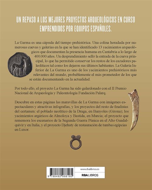 Descubre en estas páginas las maravillas de La Garma con imágenes espectaculares y atractivas infografías, y los proyectos del resto de finalistas del certamen: el poblado neolítico de La Draga, en Banyoles (Girona); los yacimientos argáricos del Almoloya y Bastida, en Murcia; el proyecto que rememora los escenarios de la Segunda Guerra Púnica en el Alto Guadalquivir y en Italia, y el proyecto Djehuty de restauración de tumbas egipcias en Luxor.