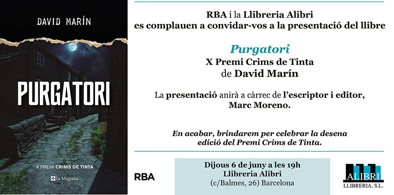 Us esperem el proper dijous 6 de juny a la presentació de Purgatori a Barcelona i brindarem en acabar per celebrar la desena edició del Premi Crims de Tinta.