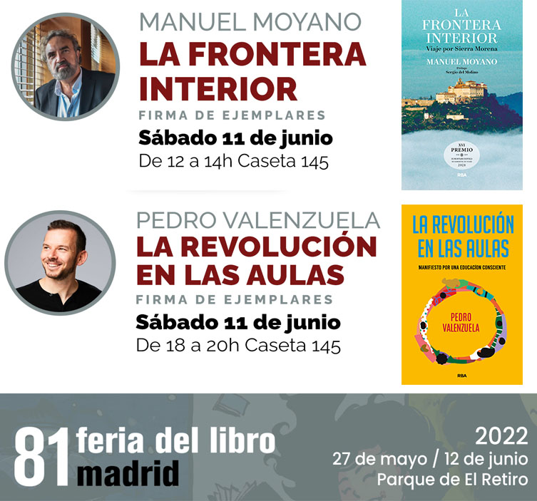 Este año la Feria del Libro de Madrid vuelve a celebrarse sin restricciones y con muy buenas perspectivas. Tras unos años complicados, lectores, libreros, autores y editoriales esperan con muchas ganas poder volver a reunirse en el Parque de El Retiro para disfrutar de la Feria que se inaugura el viernes 27 de mayo. Como cada año, RBA volverá a estar presente en la Feria: nos encontraréis en la caseta número 145. Consulta a continuación los autores de RBA que van a estar en la Feria para firmar libros y charlar con los lectores.