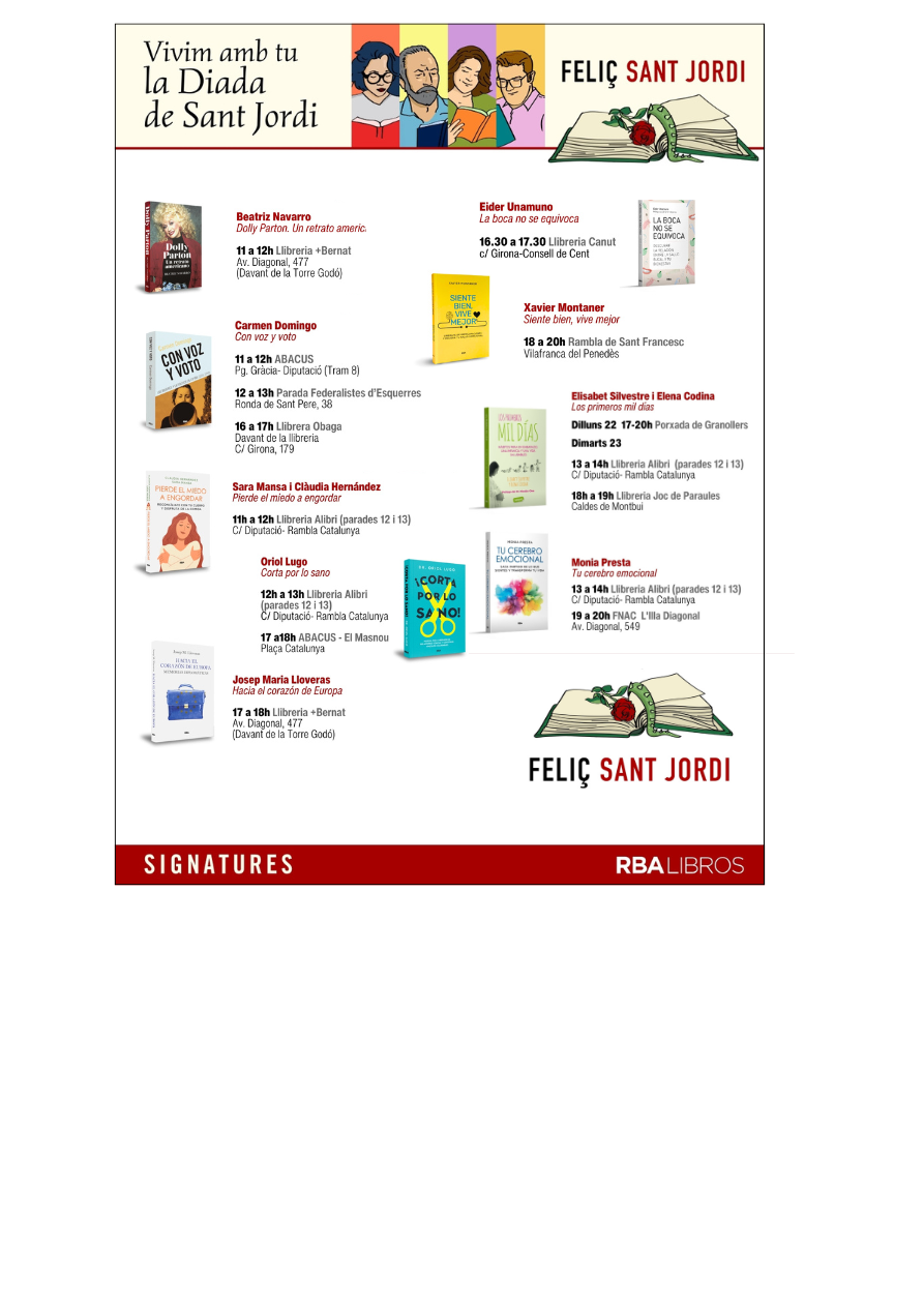 Inicio / Actualidad Vivim amb tu la diada de Sant Jordi Un anys més els carrers s'omplen de roses i de llibres per gaudir la diada 23 abr. 2024 Compartir: