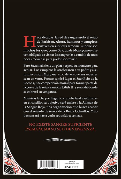 Pero Savannah tiene un plan y espera su momento para actuar. Los vampiros le arrebataron a su padre y a su primer amor, Morgana, y no dejará que sus muertes sean en vano. Pronto tendrá lugar el Sacrificio de la Corona, una competición mortal para formar parte de la corte de la reina vampira Lilith II, y será ahí donde se cobre su venganza.