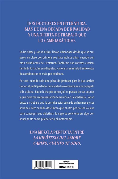 Sadie Shaw y Jonah Fisher llevan odiándose desde que se cruzaron en clase por primera vez hace quince años, cuando aún eran estudiantes de Literatura. Conforme sus carreras crecían, también lo hacían sus disputas y ahora, la enemista entre estos dos académicos es más que evidente.
