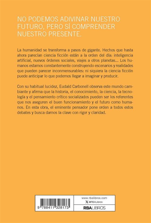 La humanidad se transforma a pasos de gigante. Hechos que hasta ahora parecían ciencia ficción están a la orden del día: inteligencia artificial, nuevos órdenes sociales, viajes a otros planetas... Los humanos estamos constantemente construyendo escenarios y realidades que pueden parecer inconmensurables: ni siquiera la ciencia ficción puede llegar a adivinar lo que podemos llegar a imaginar y producir. Ante este mundo de posibilidades, Eudald Carbonell tiene claro que la historia, el conocimiento, la ciencia, la tecnología y el pensamiento crítico socializados pueden ser los referentes que nos aseguren el buen funcionamiento y el futuro como humanos. En esta obra, el eminente pensador pone orden a todos estos debates y busca darnos la clave con rigor y claridad.