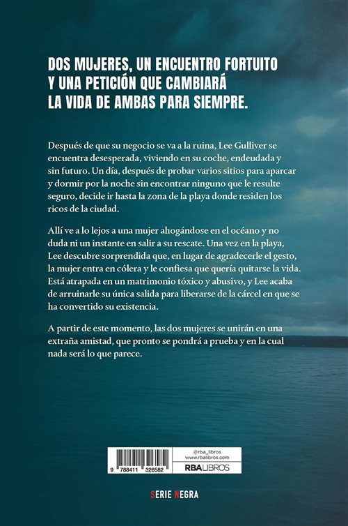 Allí ve a lo lejos a una mujer ahogándose en el océano y no duda ni un instante en salir a su rescate. Una vez en la playa, Lee descubre sorprendida que, en lugar de agradecerle el gesto, la mujer entra en cólera y le confiesa que quería quitarse la vida. Está atrapada en un matrimonio tóxico y abusivo, y Lee acaba de arruinarle su única salida para liberarse de la cárcel en que se ha convertido su existencia.