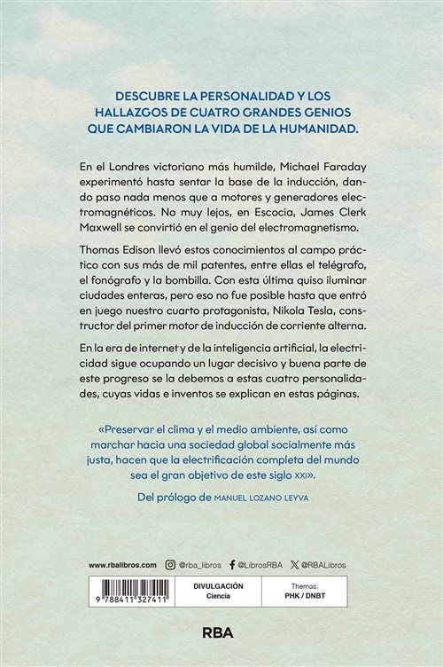 En la era de internet y de la inteligencia artificial, la electricidad ocupa un lugar decisivo, lugar que seguirá ocupando en el futuro, pues es la clave para frenar el cambio climático. Pues bien, buena parte de nuestro progreso y bienestar se la debemos a cuatro personalidades cuyas vidas e inventos se explican en estas páginas.