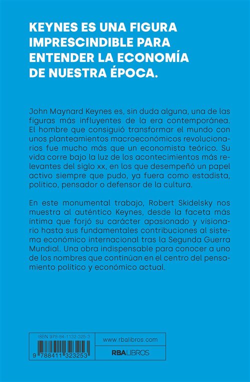 En este monumental trabajo, Robert Skidelsky nos muestra al auténtico Keynes, desde la faceta más íntima que forjó su carácter apasionado y visionario hasta sus fundamentales contribuciones al sistema económico internacional tras la Segunda Guerra Mundial. Una obra indispensable para conocer a uno de los pensamientos que aparecen en el centro del político y económico actual.