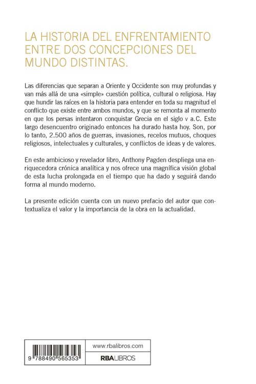 Las diferencias que separan a Oriente y Occidente son muy profundas yvan más allá de una "simple" cuestión política, cultural o religiosa. Hay que hundir las raíces en la historia para entender en toda su magnitud el conflicto que existe entre ambos mundos, y que se remonta al momento en que los persas intentaron conquistar Grecia en el siglo v a. C. Este largo desencuentro originado entonces ha durado hasta hoy. Son, por lo tanto, 2.500 años de guerras, invasiones, recelos mutuos, choques religiosos, intelectuales y culturales, y conflictos de ideas y de valores.