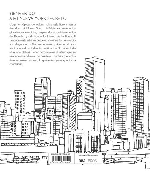 Coge tus lápices de colores, abre este libro y ven a descubrir mi Nueva York. ¡Diviértete recorriendo las gigantescas avenidas, respirando el ambiente único de Brooklyn y admirando la Estatua de la Libertad! Descubre esta urbe en perpetuo movimiento, su energía y su elegancia... Olvídate del estrés y viste de mil colores la ciudad de todos los sueños. Un libro que todo el mundo debería tener para revelar el artista que se esconde en cada uno de nosotros... y olvidar, al cabo de unos trazos de color, las pequeñas preocupaciones cotidianas.