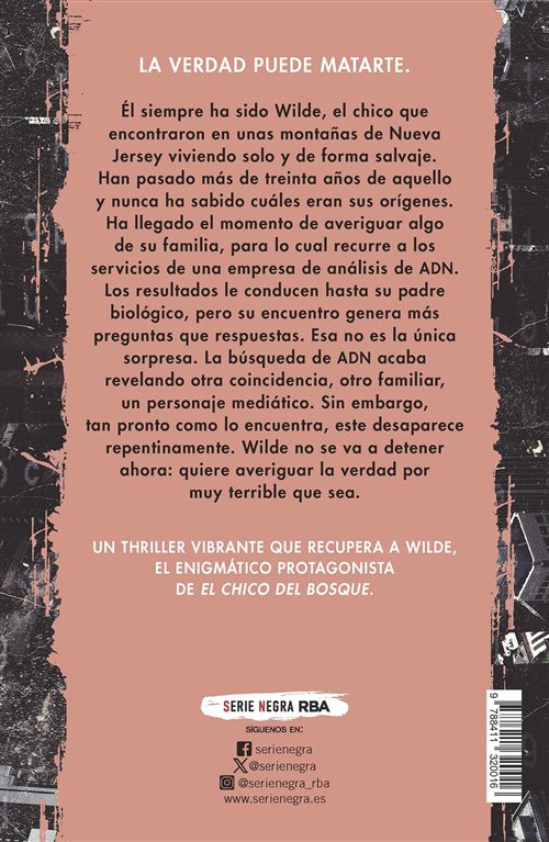 Él siempre ha sido Wilde, el chico que encontraron en unas montañas de Nueva Jersey viviendo solo y de forma salvaje. Han pasado más de treinta años de aquello y nunca ha sabido cuáles eran sus orígenes. Ha llegado el momento de averiguar algo de su familia, para lo cual recurre a los servicios de una empresa de análisis de ADN. Los resultados le conducen hasta su padre biológico, pero su encuentro genera más preguntas que respuestas. Esa no es la única sorpresa. La búsqueda de ADN acaba revelando otra coincidencia, otro familiar, un personaje mediático. Sin embargo, tan pronto como lo encuentra, este desaparece repentinamente. Wilde no se va a detener ahora: quiere averiguar la verdad por muy terrible que sea.