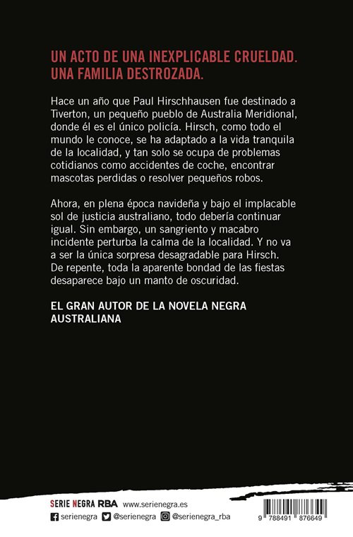 Ahora, en plena época navideña y bajo el implacable sol de justicia australiano, todo debería continuar igual. Sin embargo, un sangriento y macabro incidente perturba la calma de la localidad. Y no va a ser la única sorpresa desagradable para Hirsh. De repente, toda la aparente bondad de las fiestas desaparece bajo un manto de oscuridad.